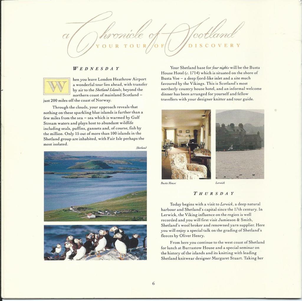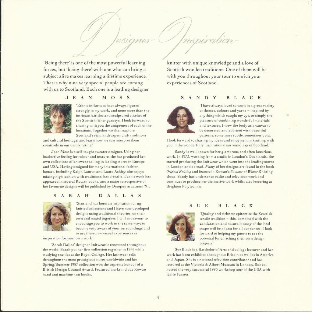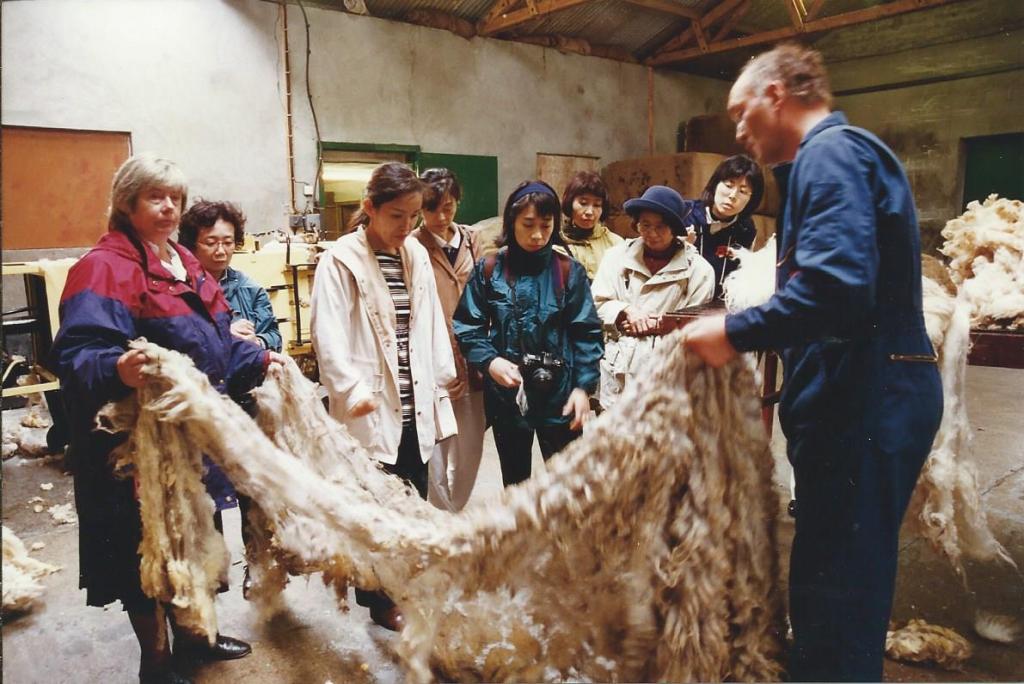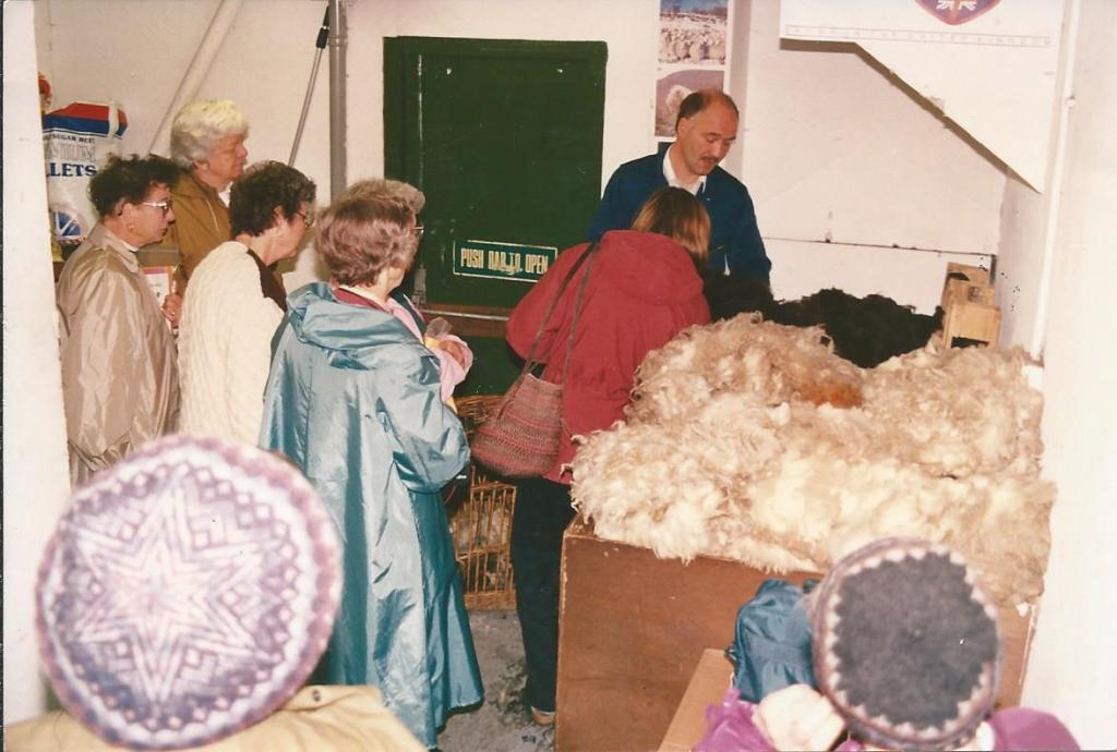 In the late 1980s I became involved with visiting groups such as the Rowan Travel Heritage Tours the Wool and Wonders of Scotland. My role was to give a talk on all things wool related, sheep, yarns and textiles in general. Rowan’s groups hailed from all parts of the world and involved visiting all the scenic parts of Scotland including Shetland, and the Western Isles, seeing hand knitting and weaving and meeting the artisans of the various crafts.